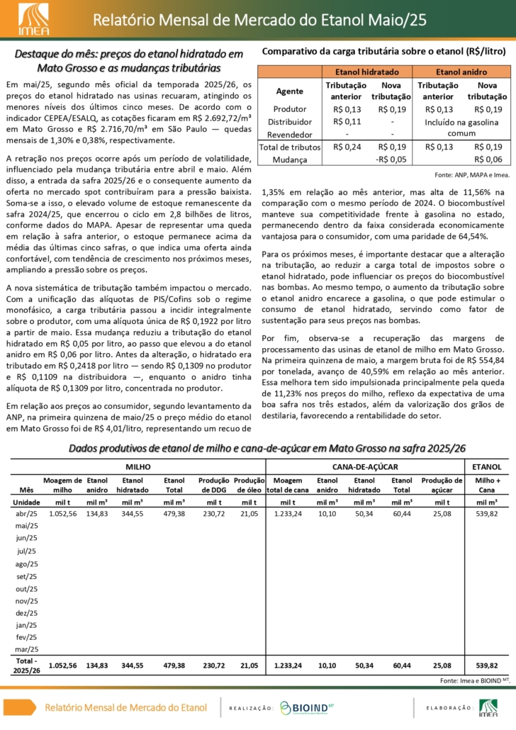 Segundo dados do Relatório IMEA, realizado em parceria com o Bioind, a medida tem potencial para movimentar toda a cadeia produtiva de biocombustíveis, com destaque para Mato Grosso, líder nacional na produção de etanol de milho.